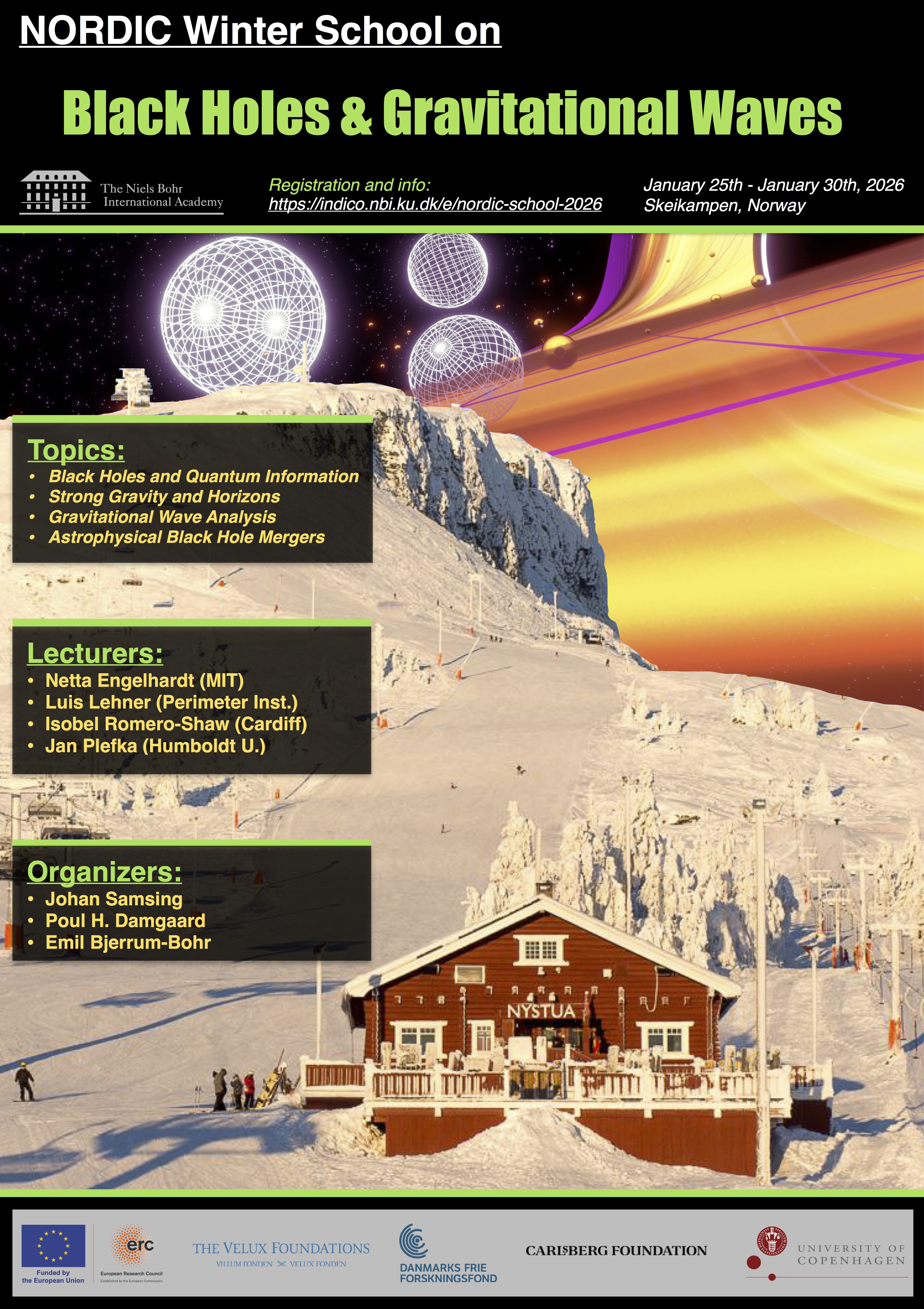 The Nordic Winter School aims to introduce Ph.D. students, advanced Master's students and Postdocs to current exciting topics in theoretical physics. This year, the school has a particular focus on black holes, gravitational physics, gravitational wave analysis, and astrophysical GW sources.